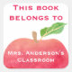 This Book Belongs To Personalised Classroom Apple Stickers. Mark your classroom books with these personalised apple book stickers. Red font states this book belongs to. White font inside of a watercolor style apple has room for classroom name. Personalise to say child's name, teachers name or school.