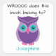 This Book Belongs To Personalised Purple Owl Kids Square Sticker