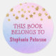 This Book Belongs To - Pink Glitter Gold Stars Classic Round Sticker