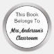 This Book Belongs To Teacher's Name Silver & White Classic Round Sticker