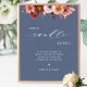 Honour your loved ones who passed on with this elegant "this candle burns" in loving memory wedding sign. Design with modern handwritten calligraphy details and a beautiful floral border with flowers in burgundy, blush, pink, peach, champagne, and yellow tones. Attractive blue background colour. Personalise it with the couple's names, and you also have the option to customise the message as you like. 10" x 8" is only our default size, the sign is available in many sizes.