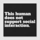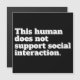 Grab this "This human does not support social interaction" design funny sayings tee shirt to show your sense of humour by wearing this basic cool text style. for Black and White Contemporary Art Lovers. I'm sure that it can spark many conversations and will help with breaking the ice. This design is a great gift idea for introverted friends or family and also makes a great birthday, holiday gift, or Christmas present. (YOU CAN CHANGE AND CUSTOMIZE THIS TEXT DESIGN OR ANY TEXT YOU WANT IN MY STORE!).