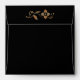 Square black envelope to match our “This is Bali” invitation has an image on the inside of an intricate charcoal, brown, and orange design. The back flap has a graceful sweep of flowers cut from the same image that lines the inside. See matching invitation, label, favour bag, favour box, favour tag and sticker. See the entire Bali Retreat Envelope collection in the INVITES | Envelopes section.
