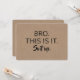 My fiance LOVED this card and laughed as soon as he finished reading it. I ordered this as a sample card to see if he liked it, and he did! I am placing an order for 8 of these cards with a little extra personalization on the bottom! The quality of the card is amazing! I love the matte option. I am using it for anything that I order from now on!