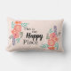"This is my Happy Place" Quote Watercolor Floral Lumbar Cushion