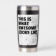 Take your confidence on the go with this This Is What Awesome Looks Like thermal tumbler. Featuring bold, distressed typography, this sleek drinkware piece is perfect for keeping beverages hot or cold while making a strong statement.