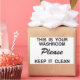 This is your washroom please keep it clean sticker. great sticker to put on a bathroom mirror or door to trmind employees that this is their washroom and they should keep it clean for their own sake. This is your washroom please keep it clean stickers can be used in all businesses.This is English, I also have this in Spanish in my store.