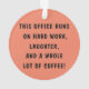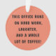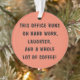 "THIS OFFICE RUNS ON HARD WORK, LAUGHTER, AND A WHOLE LOT OF COFFEE!" Word Art Christmas Ornament by Monkey Business Graphic Design.