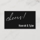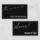 This suite's distinction is due to the contemporary script font used for accent phrases. In this piece, the elegant font was used to create a graphic depicting the words "this one is on us", placed on the front, and "cheers!" on the back. Use the template fields to add your personal details and make this unique, modern design your own. The background can be changed to any colour you prefer. Please reach out with any special requests or for customising assistance. // 158 //