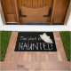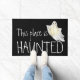 Doormat with "This place is HAUNTED" written on it and a sheet ghost.