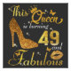 This queen is turning 49 and fabulous shirt is perfect for celebrating her 50th birthday. This shirt features a glittery, rhinestone design on the front with a colourful, 50th birthday banner across the back. The fabric is comfortable and breatheable, making it perfect for any summer day. Whether she's out running errands or hosting a party, this shirt will make her look fabulous.