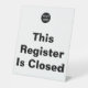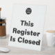 You can edit the black display text to create a custom message for your business. The white sign says: This Register Is Closed. An image is above the text. You can replace the image with your company logo.
