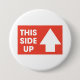 Whether you're the type who's always on the go or just someone who enjoys a good laugh, this button is a must-have addition to your collection. The familiar "This Side Up" message, accompanied by a bold and playful up arrow, adds a quirky twist to an everyday sign.