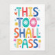 Encourage someone to hang in there with this decorative and colourful typography design featuring the message, "This Too Shall Pass." Type is accented with bright and cheerful floral, star, and butterfly icons. Inside can be customised to fit your needs.