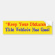 This funny bumper sticker says, "Keep your distance--this vehicle has gas!" Well, it's true, isn't it? And in case you're thinking this rude bumper sticker has no artistic merit, remember that it will make a funny gift for your rude friends. Put this sticker on your car if you've got the nerve, and give those tailgaters something to think about besides riding your as*.