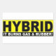This vehicle is a hybrid It burns gas and rubber Rectangular Sticker