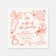 Get ready to trade the feathers for a veil! Celebrate the bride-to-be in true Las Vegas style with these "Wife of the Party!" bachelorette party paper napkins. Featuring chic, retro-inspired hand-drawn illustrations of a showgirl in a martini glass, disco ball, whimsical bow, ring, feather, hearts and musical notes, this design captures the glitz and glamour of a classic cabaret night. The whimsical design is perfect for "One Last Show Before The "I Do's!" and the template wording is easy to personalize using Zazzle’s design tool to match your specific dates, locations, and the all important name of the bride-to-be! Matching party items can be found in the collection.