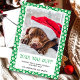 Share your holiday greetings with a touch of humour and charm with this "This Year Was Ruff" green pet photo Christmas card. Featuring an adorable photo of a dog wearing a Santa hat and a festive paw print border, this card is perfect for pet lovers. Personalise with your own pet's photo and a custom message to make it uniquely yours. This card captures the sentiment of a challenging year while spreading holiday cheer to friends and family.