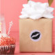 Black kiss lipstick print against a shade of purple or the background colour of your choice.