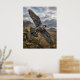 A striking thistle falcon soars above dramatic cliffs where speed and botanical power unite. Sleek falcon anatomy merges with silver thistle blooms, rugged leaves, and textured feathers across its wings, chest, and tail. Rolling heather fields, distant mountains, moving clouds, and shafts of sunlight create expansive cinematic depth. This bold fantasy bird design adds motion and strength to offices, modern interiors, studies, or gift collections. Perfect for falcon lovers, mountain decor fans, and wildlife art collectors seeking refined statement pieces.