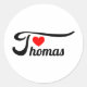 Thomas sticker with love heart. The letter T is an image the other text can be changed for any name beginning with the letter T. The heart can also be deleted and the background colour can be changed.
