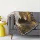 A quality printed throw has its advantages. This is a much finer weave throw than its loopier cousins, and though lighter, it is worth the investment for custom room accessorizing. The back is much prettier than the typical brown, and the fringe on the long sides very vivid, the selvage nicely done. Before photographing, I washed the throw in cold water, delicate, with a thicker woven throw the same size. On tumble dry low, this throw was dry in half the time as the other. This is a very practical quality if you use throws for furniture covers or to wrap up in frequently. The sleekness of the fabric makes it a great layer for accenting or protecting without the feeling of sitting on too much stuff. Perfect for napping or when you feel a light chill coming on. The color printing is beautiful and on this fabric, matched the design and color of my Photoshop image. This is an advantage for blending room fabrics and colors. The fringe on the short sides prints the colors from the design image and therefore varies from the side fringe. I streaked a white fractal line through the plaid pattern to give the illusion of weaving. This printed as crisp as an illusory thread, and put some white in the short side fringe, showing another advantage of print vs loomed- for artistic purposes, line lines, detail, and color integrity can be planned and preserved. My loomed throws have color limitations and more of a needlepoint texture. Print throws reproduce an exact image. The throw felt a little stiff straight out of the package, but this went away in the first delicate wash. Of course I searched the wash water for ink or bleeding and there was none.
