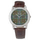 The watch looks really great! Very sharp and well done. The leather band is really nice, though for a man's watch I think it should be longer. Unfortunately, it isn't big enough for my husband's wrist but I will get a replacement because he is very excited to wear it!