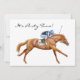 Original fine art design of a Thoroughbred horse by designer Carolyn McFann of Two Purring Cats Studio on a customisable invitation for equestrian sport fans.