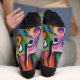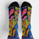 The socks have a bunch of crazy looking abstract cartoon dogs on them these are very bright and colorful.