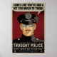 The poster itself is well-designed and suitable for framing. It is very unusual, clever and thought-provoking. The play on words..."too much to drink" (like a regular cop might tell you) vs "too much to think" (like a thought-cop might tell you.) It is a clever concept and I have already got two thumbs up from buddies about it. Of course, it's not for everyone: if you are a "ditto-head" or a fascist in the making, you WON'T like it. It's a treat for the eyes and for the brain. Well-done! the design is fine - truly professional - but I might suggest a cop in full-riot gear. The cop shown looks too old-fashioned, and thus too friendly.