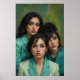 An elegant portrait of three women in teal blazers, celebrating beauty, strength, and unity with bold expressions and rich textures.
