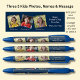Three 3 Photos with Names & Message Blue on Blue Blue Ink Pen