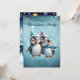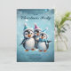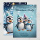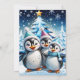 Three adorable penguins stand in festive winter hats and colourful scarves. Their big, round eyes shine with joy, while their fluffy white bellies contrast with the bright blue Christmas tree decorated with twinkling lights. The penguins smile happily and seem ready to celebrate the magic of the holiday season. All around them, delicate snowflakes dance through the air, while twinkling stars shine in the sky, creating a warm, festive atmosphere. This design perfectly captures the spirit of Christmas - full of joy, friendship and winter wonder!