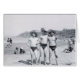 This card features a vintage photograph of three men having fun in silly hats on the beach. Blank inside.