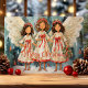 Send holiday blessings with this charming Christmas card featuring three angelic choir girls, dressed in festive white and red outfits. The soft, warm illustration captures the spirit of the season, with the angels surrounded by a magical winter landscape. This heartwarming card is perfect for sharing the joy of Christmas with loved ones.