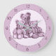This Three Bears Numbered Pink Round Acrylic Wall Clock features three teddy bears drawn in pen & ink and tinted a soft mauve pink. It is part of collection of Three Bears items for the nursery, including lamp shade, throw pillow, night light, and foot pillow cube pouf. Coordinates well with greys and whites (and the right shade of mauve pink.) Also suitable in a big girl’s room.
