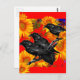 THREE BLACK BIRDS IN SUNFLOWER FIELDS POSTCARD