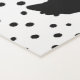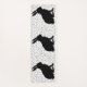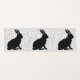 This yoga mat has three sitting black rabbits in black silhouette on a white background with black polka dots.