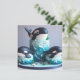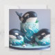 THREE BLACK & WHITE ORCA WHALE BIRTHDAY CAKE CARD