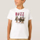 Three adorable bumble bees and bright red big text that reads "BUZZ" on bumble bee T-shirts, cards, stickers, mugs, and other bumble bee gear.