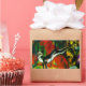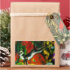 Beautiful and brightly coloured oil on canvas painting by German artist Franz Marc entitled, "Three Cats". The cat in the foreground is black and white, standing on its front paws with back legs in the air, while one yellow cat and a large red cat are in the background. Wonderful combination of reds, greens, yellows and purple. Completion date: 1913.