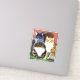 Sticker in a portrait of three cats with serious attitude - these guys mean business - a Russian Blue, a brown and white Persian, and an orange and white, tiger striped tabby