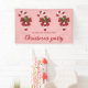 Destei's original illustration of three red and white striped Christmas candy cane treats decorated with a red bow and a Christmas holly / Common holly plant. The background colour is pink. There are also two personalizable text areas.