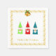 Three Cute Christmas Gnomes on white and golden. Text can be personalised. The gnomes bring love, good fortune and wisdom! Merry Christmas!