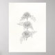 Three hand-sketched chrysanthemums. Mums art print on neutral background. Minimal pencil sketch art.