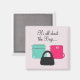 Three charming handbags in aqua, hot pink and black. A cute saying for a purse collector!