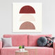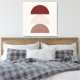 A modern minimalist style abstract artwork with three harmoniously coloured painted crescents with a subtle brush stroke texture. With a cream coloured background.