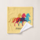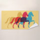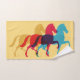 Three Colourful Prancing Horses Design Bath Towel Set with optional personalisation and customisable background colour.