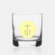 Rocks or whiskey glass showing three reddish-brown crosses, like those on Calvary, make a simple statement. They show in a pale yellow, fractal circle. Great Christian housewarming gift. Lovely way to share your faith.