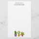 Stationery paper with a whimsical illustration featuring 3 happy little cacti sitting in their own flower pots. They each have their own unique expressions smiling and looking happy.